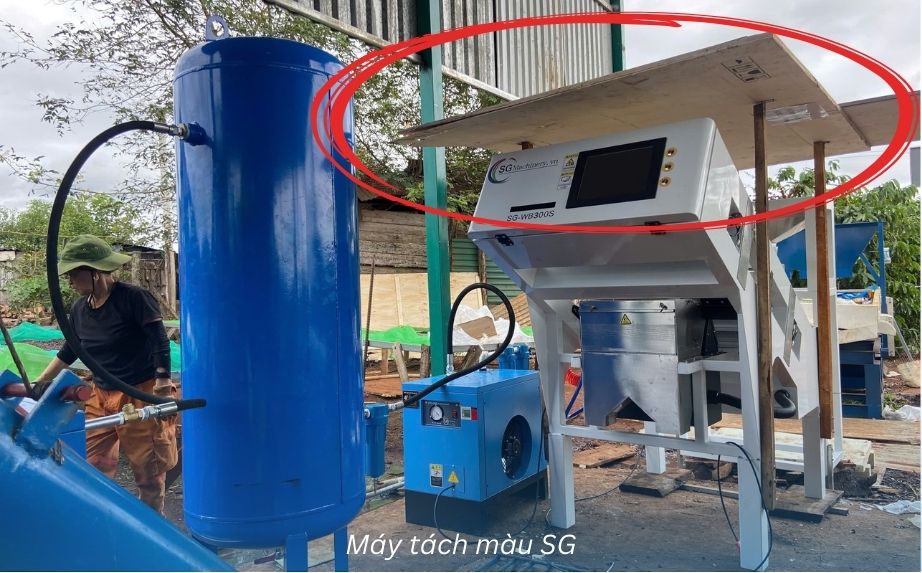 SG đã bàn giao máy bắn màu cà phê tươi SG-WB300s kèm theo: Bộ máy nén khí trục vít 10HP và máy sấy khí chuyên dụng.
