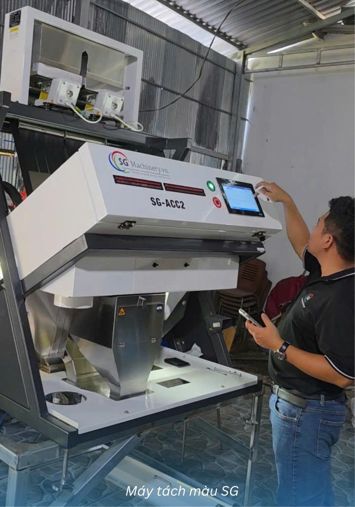 Tháng 3/2026, SG đã bàn giao một máy tách màu SG-ACC2 cho khách hàng chuyên sản xuất con ruốc khô tại Củ Chi. Đây là dòng máy có thiết kế đơn giản nhưng mang lại hiệu quả vượt trội nhờ khả năng điều chỉnh đèn chiếu sản phẩm và màu background – tính năng mà không phải máy nào trên thị trường cũng có.